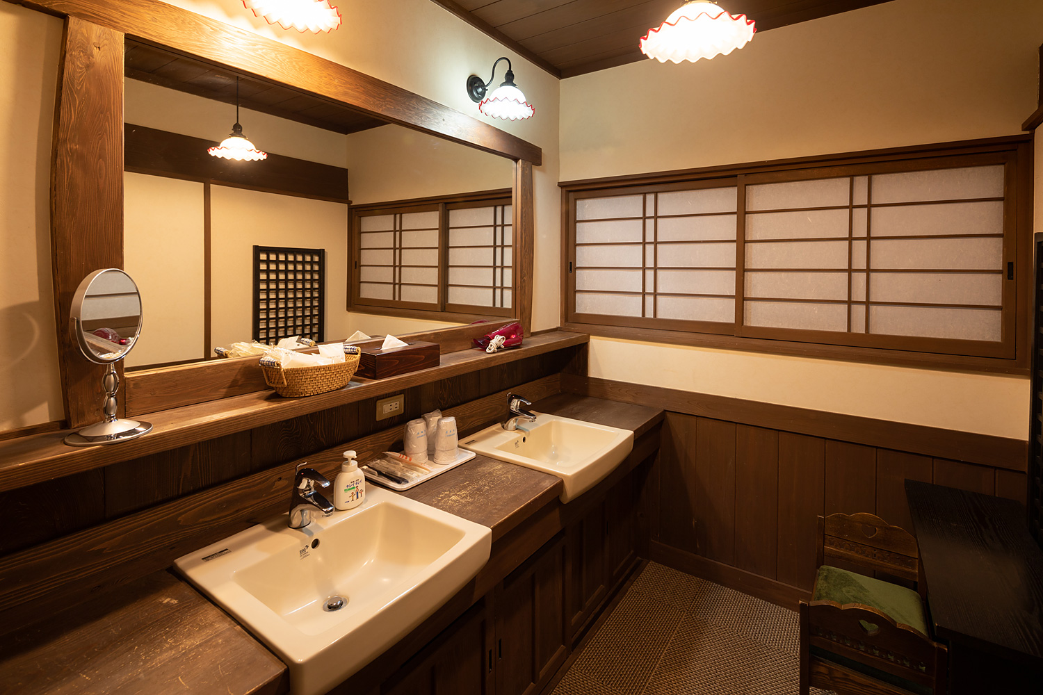 和洋の部屋が四室、部屋付きのお風呂もあり、大人数のグループでもご利用いただけます。